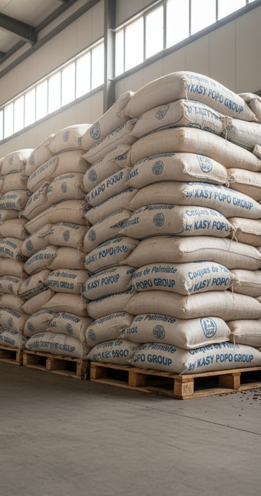 Découvrez la galerie de KASY POPO GROUP, le moteur de la transformation industrielle en Afrique. Nous présentons une gamme essentielle de matières premières, où chaque produit est l'incarnation d'une qualité certifiée et d'une expertise reconnue. Du cœur de l'innovation avec nos huiles de palmistes qui propulsent les PME de savonnerie et de cosmétique, à la force de nos tourteaux qui nourrissent l'élevage, jusqu'à l'énergie durable de nos coques de palmistes pour l'industrie du ciment, nous sommes le fournisseur majeur qui garantit la performance et l'excellence dans le commerce général.