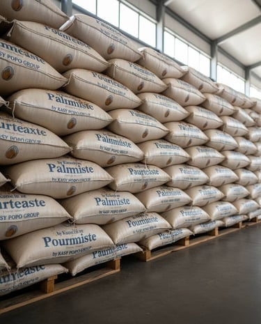 La Valorisation Complète : Nous sommes également un fournisseur majeur de Tourteaux de Palmiste, un co-produit stratégique riche en protéines et en fibres, indispensable pour une alimentation animale économique et nutritive.